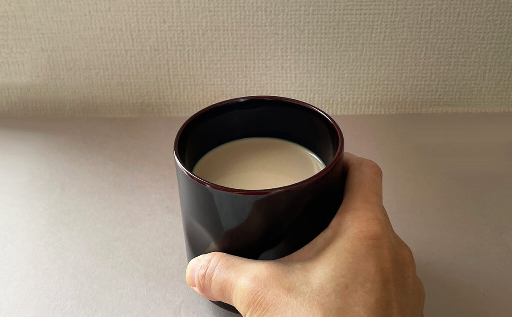 もともと輪島塗は熱を通しにくいので、熱々のコーヒーが入ったカップをじかに持っても人肌ほどの温かさですし、キンキンに冷やしたアイスコーヒーでも水滴がつかず飲みごろをキープしてくれます。